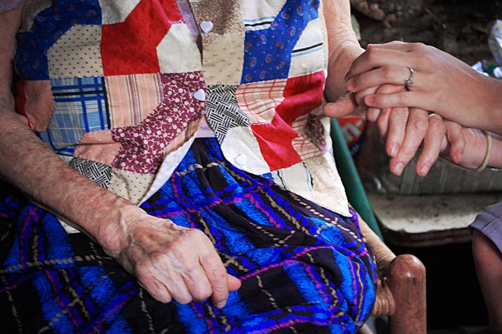 “This isn’t normal,” she seemed to say, her whole body tense with uneasiness and yet she couldn’t hide the excitement of having company. We surrounded her like a loved grandmother and listened to the stories she hadn’t had the opportunity to tell in years. The strength that she radiated was enough for us to look past the outdated and slightly baggy clothes, the wrinkled skin that didn’t seem to fit and the shock of how tiny and frail her body truly was. But her strength couldn’t completely hide the tears when she cried out to confess she wasn’t evil, that she wasn’t a mean person; that singing Amazing Grace would be too sad. She compared herself to Job; she’d lost everything and everyone, but she’d rather die than feel the hurt and pain that was now the only thing I could see in her eyes, she had so many questions that none of us could answer, so many “why’s” and yet those eyes shone; brighter and brighter with each confession and each new tear. It wasn’t until we had to pull ourselves away that they lost their sparkle. It was then that I witnessed a woman so full of loneliness that she was unable to say good-bye to random strangers break with the words; “I was thinking about just giving up, but then y’all showed up, so I guess I’ll just hang-in.”