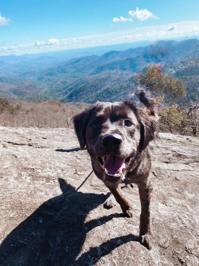 Simply a crisp and sunny day with a long drive on a winding road. A hiking trail that at times mimicked the bends of the road and left us embarrassingly out of breath. A pup that sniffed every tree, leaf, rock, and stick on his first ever hike, and a view spotted with the hints of a fall palette that made it worth every drop of sweat.
